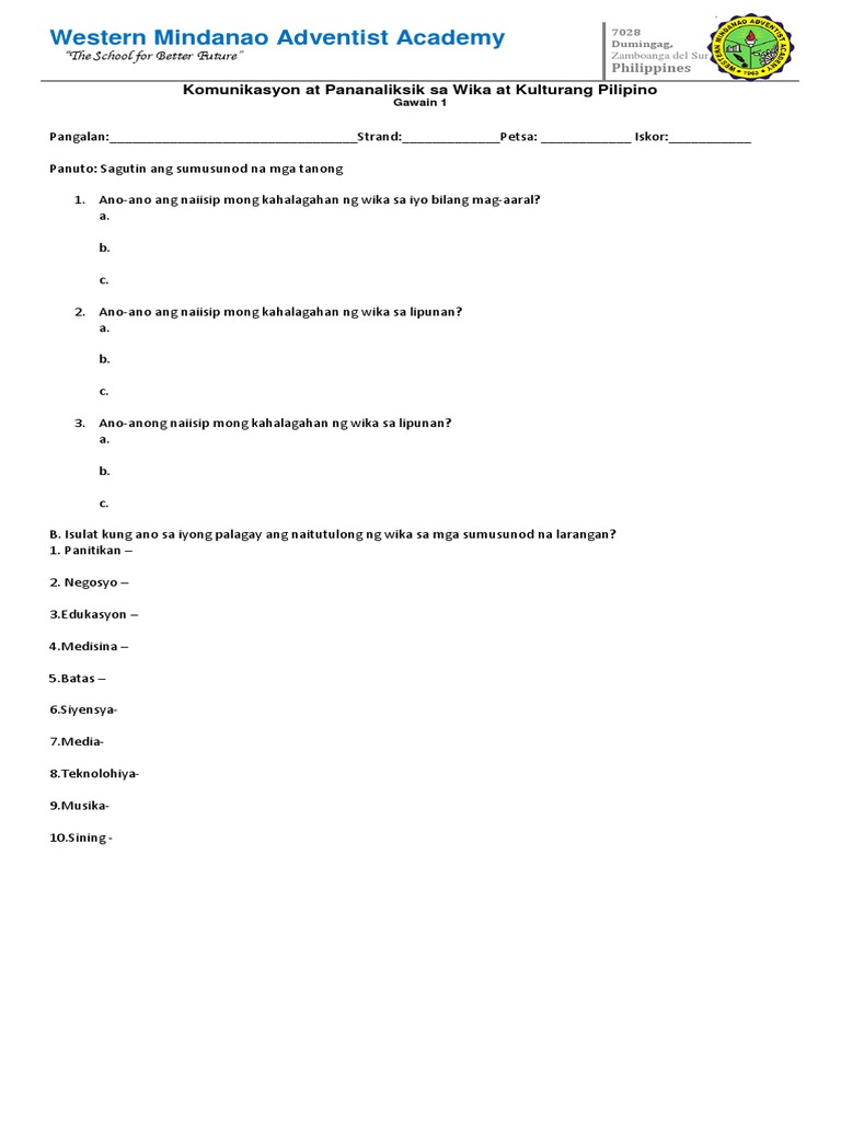 Filipino B 1 Ano Ano Ang Naiisip Mong Kahalagahan Ng Wika Sa Iyo Bilang Mag Aaral Mga Kahalagahan Ng Wika Sa Sarili Bilang Mag Aaral 1 Mahalaga Ito Course Hero