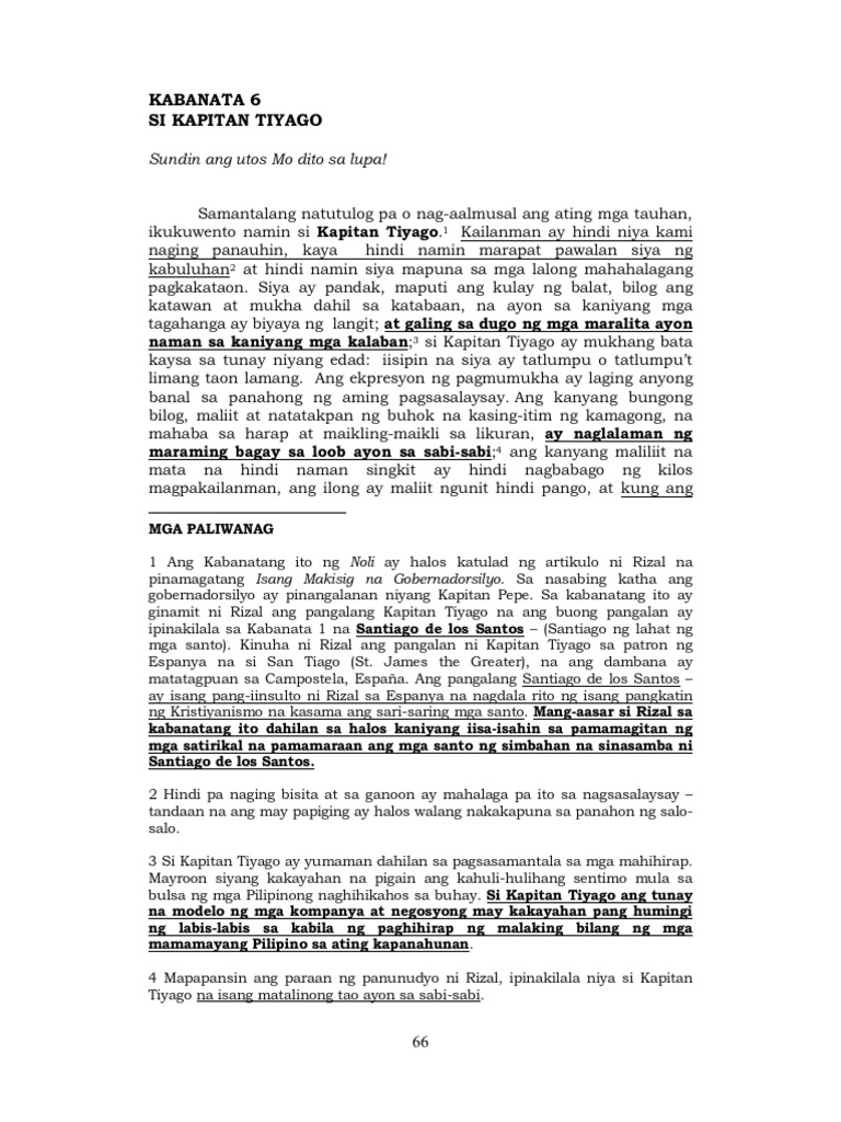 Ang posisyon niya bilang kapitan ay hindi. NG KATANGIAN NI KAPITAN TIYAG itinuturing hulog ng langit. Asawa ni Kapitan Basilio at ina ni.