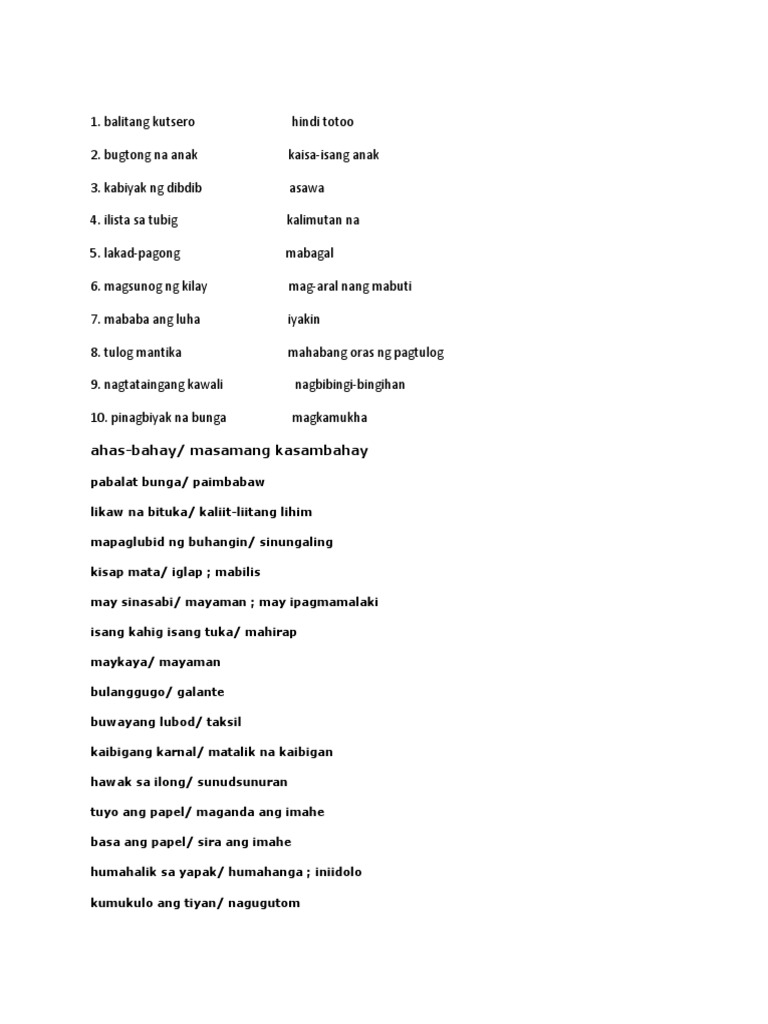 Mga Matalinghagang Salita At Ang Ibig Sabihin Nila